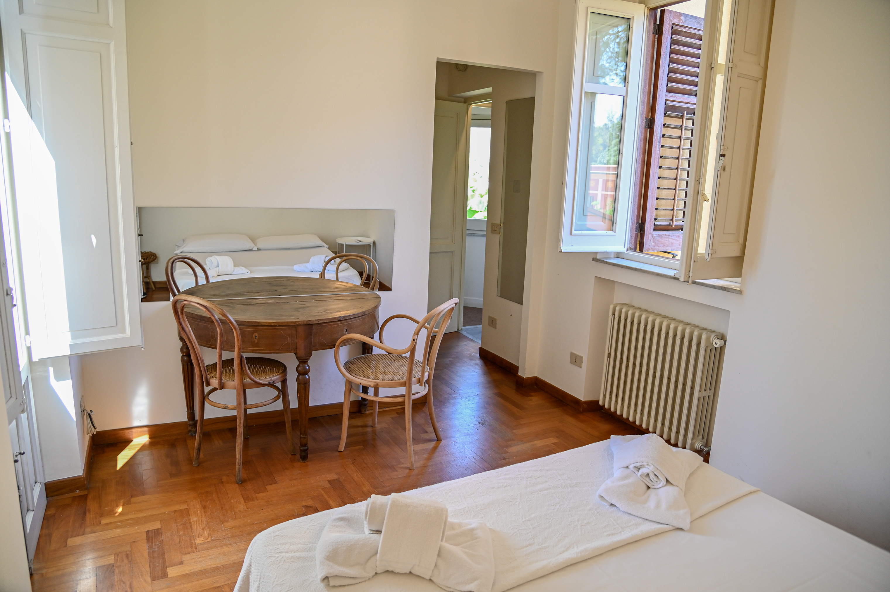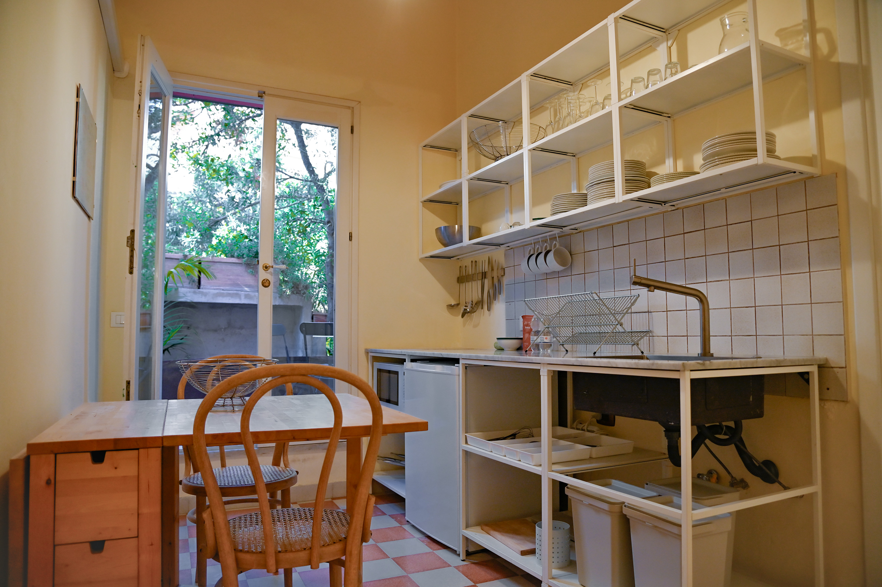 La Main House si trova al centro del giardino e si sviluppa su due piani. Al piano terra si trova uno spazio condiviso con area coworking, soggiorno e cucina. Al piano superiore c’è una suite privata con bagno interno, dotato sia di vasca che di doccia.
