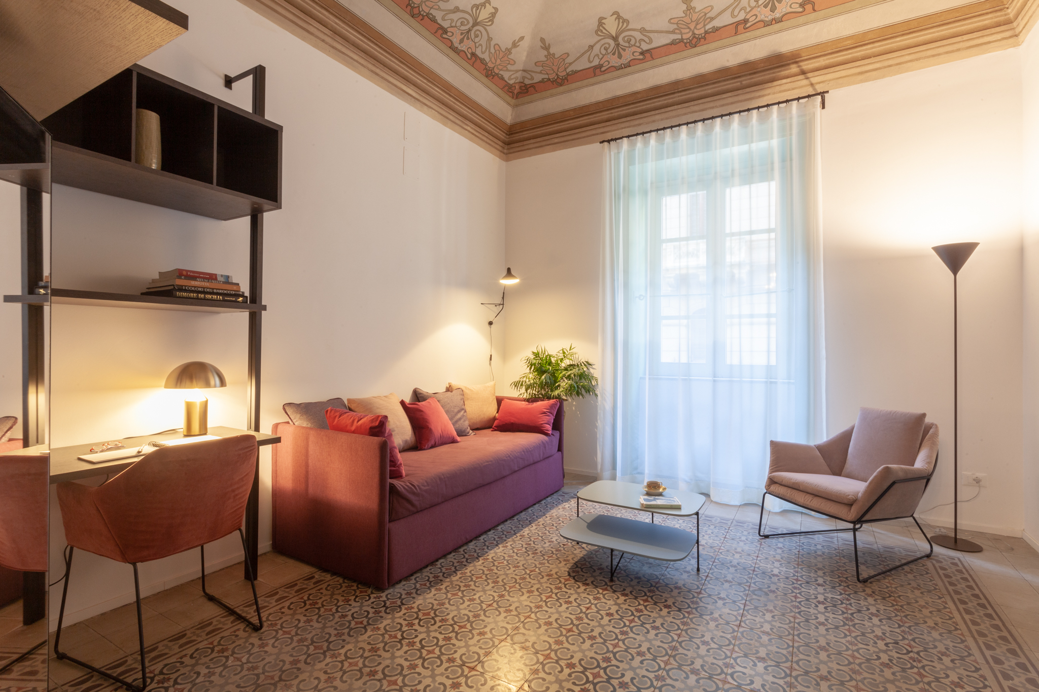 Camera matrimoniale con soggiorno dotato di divano letto (utilizzabile come singolo, doppio o matrimoniale), bagno privato, asciugacapelli, televisore, Wi-Fi, cassaforte e set di cortesia. Gli ospiti hanno accesso alla cucina e agli spazi comuni, oltre alla possibilità di utilizzare le postazioni di lavoro nella sala coworking, con computer e sala multifunzione disponibili. È incluso l’uso di lavatrice e ferro da stiro. Servizio di pulizia settimanale. Caffè, tè e acqua inclusi.