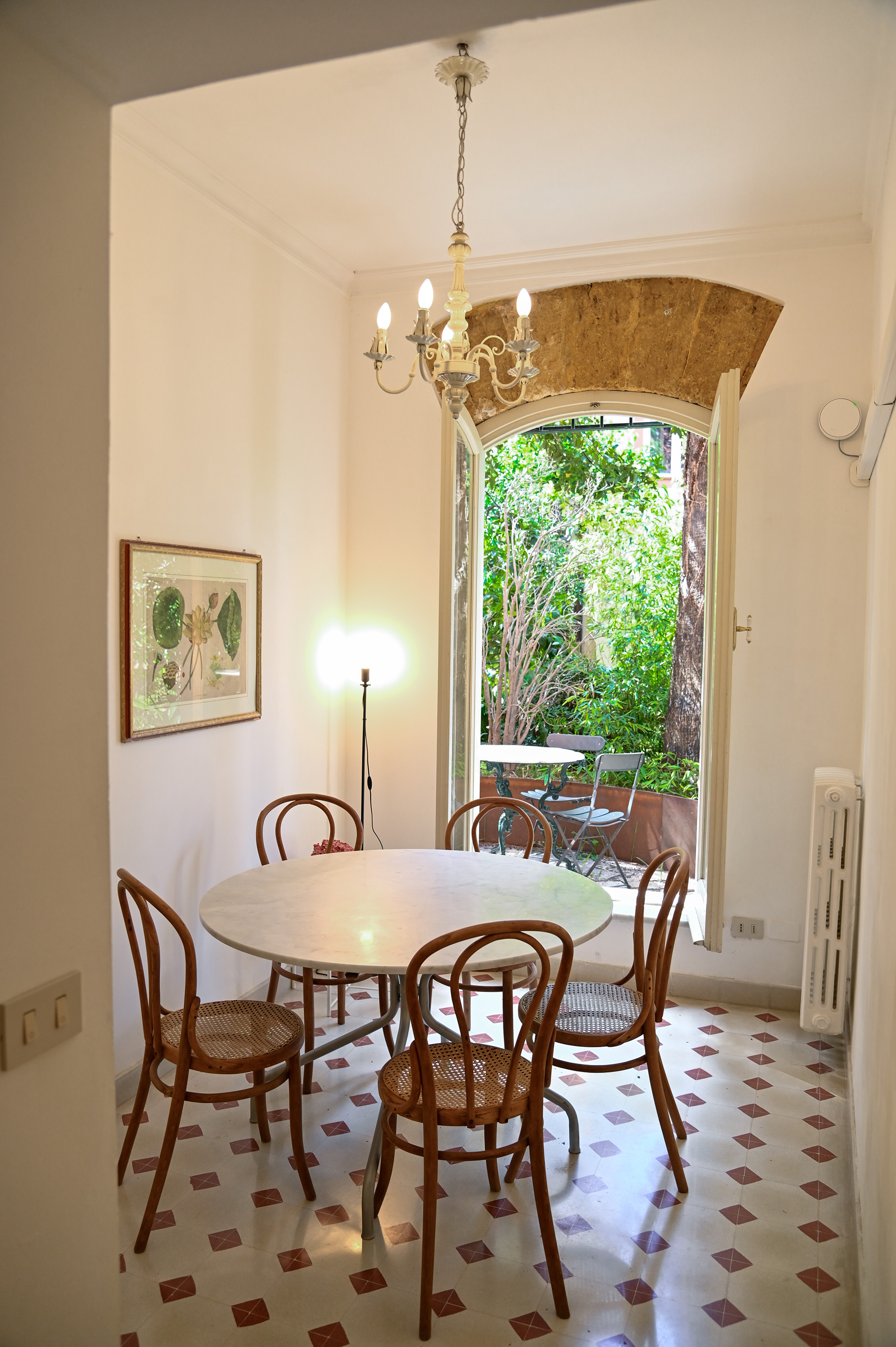 Questo appartamento dispone di cucina privata, 1 bagno, 1 sala da pranzo, 1 camera da letto con letto king-size e un soggiorno con divano letto. È presente anche un’area esterna privata nel giardino.